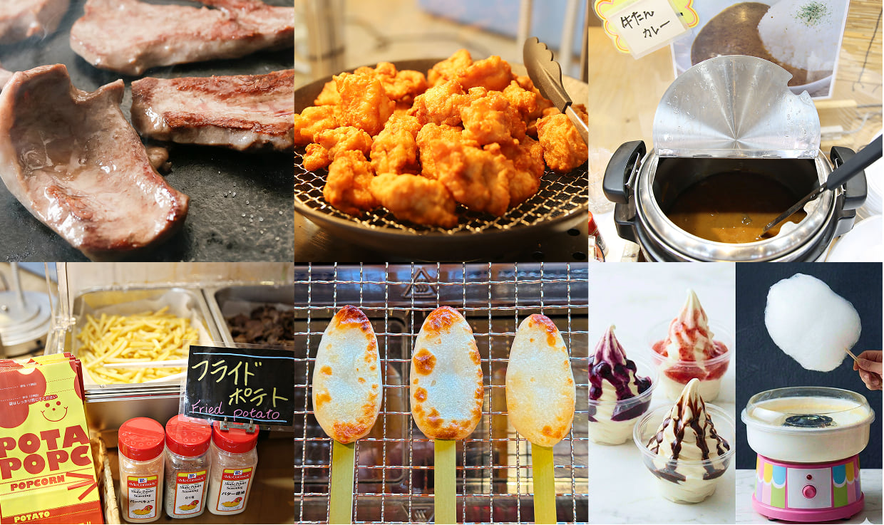 笹かま手焼き体験や、味が選べるフリフリポテトなど、子どもがワクワクするメニューもいっぱい。唐揚げや焼き魚、白石温麺、うどん、カレー、ミニシュークリーム、フルーツポンチまで。家族みんなで楽しめる料理をご用意しています。